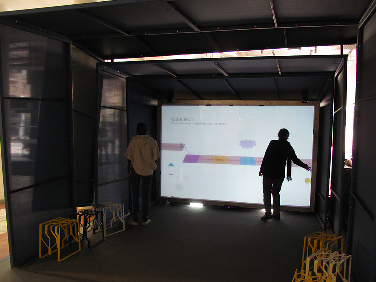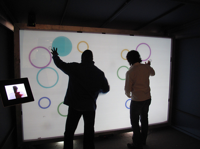 Développement et fabrication de la structure. Développement du dispositif multi-touch grand format. Programmation du système de gestion des contenus.