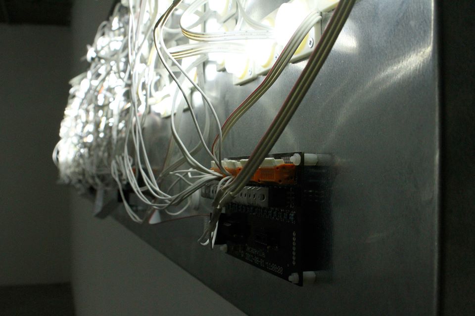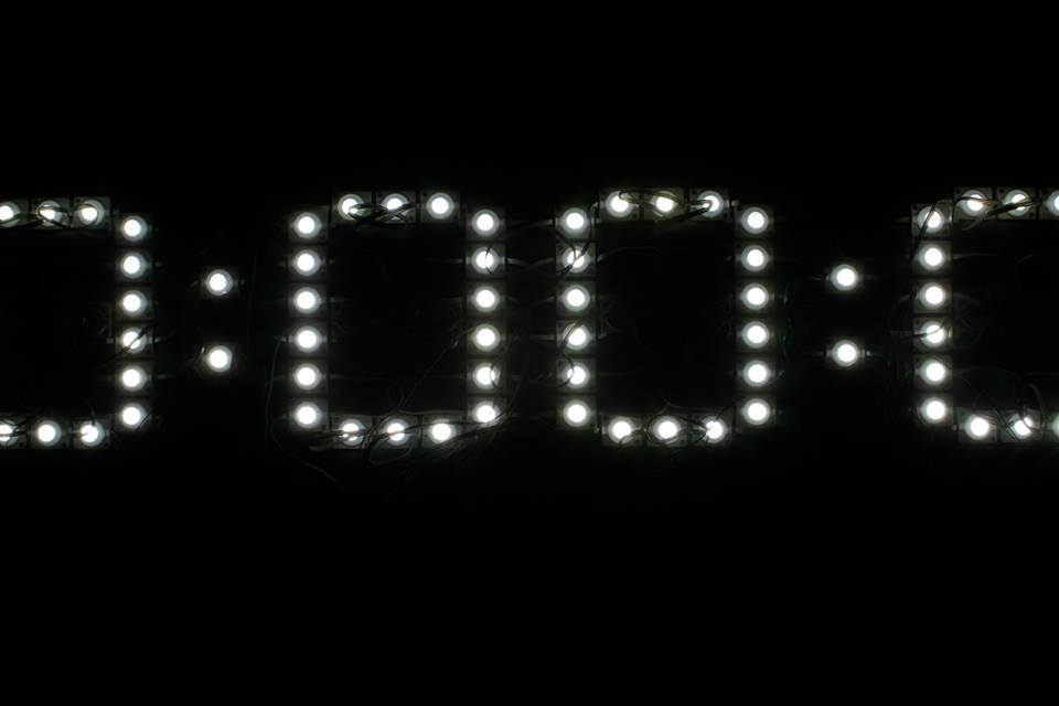 Dispositif électronique pour compte à rebours constitué de 327 leds haute puissance.